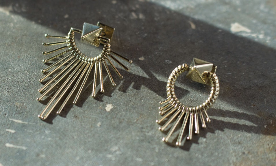 The collections, each one coming from different inspirations, constitute an organic whole, where all the elements coordinate and exchange and where some functional elements, such as the stud (that closes the earrings in all the collections) transform into constituent parts of the object’s design.